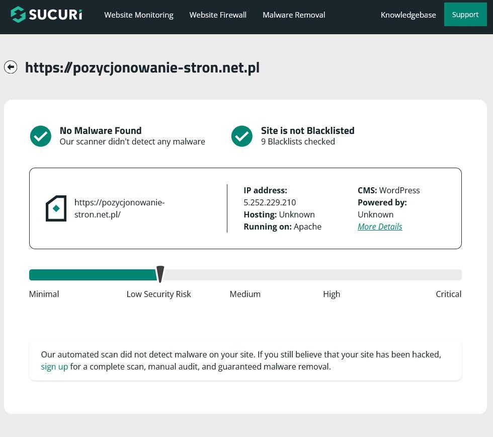 Narzędzie: Sucuri SiteCheck Wpisz swój adres URL i sprawdź, czy strona nie widnieje na czarnych listach (Blacklist) lub czy nie generuje widocznych błędów JS.